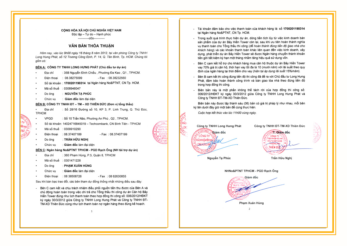 Bước 3: Đến Trụ Sở Chủ Đầu tư Bảy Hiền Tower (gặp Mr.Dũng xin lien hệ trước) để khẳng định lại thông tin và đặt cọc tại: Số 12 Trương Công Định, P.11, Q. Tân Bình, HCM.
