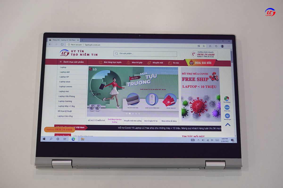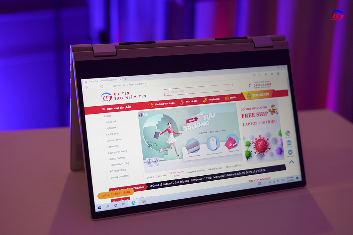 Điểm nhấn chính của dell 5406 2 in1 là bản lề có khả năng xoay gập được 360 độ, giúp bạn có thể gập mở chiếc laptop của mình ở nhiều góc độ khác nhau. Khi mở máy bản lề sẽ nâng máy lên tạo ra một góc nhỏ, giúp cho laptop được tản nhiệt tốt hơn và mang lại cảm giác khi gõ bàn phím được thoải mái hơn.Cùng với đó bạn còn có thể hô biến chiếc laptop của mình, thành máy tính bảng nhanh chóng với màn hình cảm ứng đa điểm, một cách đơn giản và nhanh chóng.