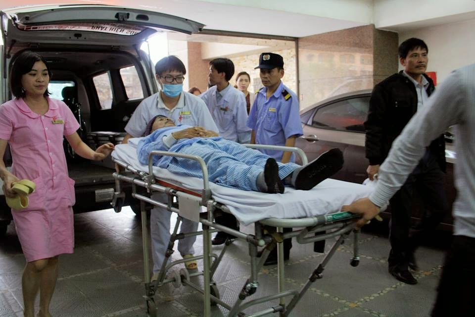Hán Văn Tình được chuyển đến bệnh vien ung bướu Hưng Việt để điều trị