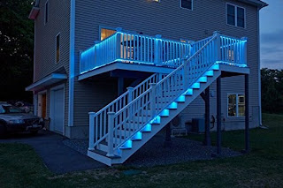 Sử dụng đèn cầu thang giúp chiếu sáng lối đi vào ban đêm và đảm bảo an toàn. Các thiết bị chiếu sáng khu vực cầu thang có thể sử dụng như đèn tường, đèn âm tường, đèn LED âm trần vuông …