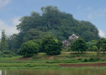 Nửa lướt ngang trời, nửa lặn bến sông quê.