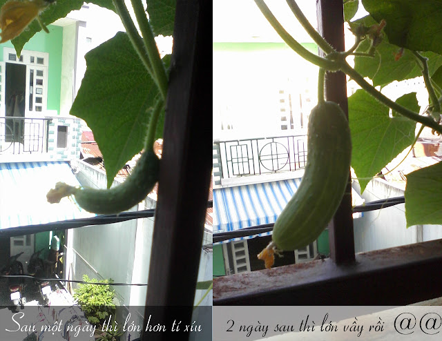 Sau một thời gian chăm bón vất vả, cuối cùng thì Dưa leo chan cũng đã hạ sanh được một ... quả dưa leo