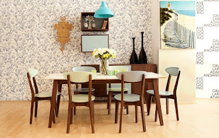 Bàn ăn mở rộng cho phép tăng hoặc giảm diện tích sử dụng Những chất liệu thường được sử dụng trong bàn ăn là gỗ, đá hoặc kính, trong khi gỗ được ưa chuộng từ lâu vì sự thân thiện, an toàn và bền vững thì kính và đá mang đến sự sang trọng và ấn tượng cho không gian. Đi kèm với bàn là các mẫu ghế, ghế ăn hiện đại cũng phải thiết kế tinh giản, hạn chế các chi tiết cầu kỳ và phải tạo ra tư thế ngồi thật thoải mái. Các loại ghế cũng dùng các chất liệu gỗ, da hoặc vải, hoặc kết hợp, nệm ngồi và lưng tựa nên có đệm để mang đến cảm giác dễ chịu khi sử dụng. Như đã nói trên, những bàn ăn hiện đại phải tạo ra một không gian thoải mái, cấu trúc chân bàn phải thon gọn để tạo rộng chỗ để chân, các đường nét gọn gàng, giúp tiết kiệm không gian Trong khi bàn ăn tròn thường được sử dụng trong phong cách cổ điển, thì bàn ăn dạng chữ nhật lại là dòng ưu chuộng cho phong cách hiện đại, với bàn ăn chữ nhật, diện tích mặt bàn và phần chỗ ngồi sẽ rộng và thoáng hơn để tạo cảm giác thoải mái khi sử dụng.tran-han-quoc-the-he-moi/ Trang trí phòng ăn Đèn trang trí , là vật dụng trang trí thường được dùng nhất trong phòng ăn, đèn giúp bàn ăn trở nên lung linh hơn, các món ăn cũng trở nên hấp dẫn hơn. Phòng ăn thường dùng đèn treo trần, có chụp với ánh sáng vàng để tạo ra ánh sáng tập trung chiếu thẳng lên mặt bàn hoặc món ăn. Đèn trang trí sẽ tạo nên về lung linh và hấp dẫn cho phòng ăn Những chiếc thảm trang trí cũng giúp cho phòng ăn trở nên dễ chịu và gần gũi hơn, thảm không những sẽ tạo ra mối liên kết giữa bàn ăn và ghế ăn mà còn mang lại cảm giác êm ái cho chân cũng như tôn lên vẻ đẹp của bàn ăn. Chọn loại thảm màu nhẹ, hoặc tương phản với bàn ăn để không gian sinh động hấp dẫn hơn. http://denledhanquoc.com.vn/den-am-tran-vuong-con-dia-chan-cua-nganh-cong-nghiep-chieu-sang/ Bình hoa, trái cây giả, những món bình trang trí,là những đồ trang trí ấn tượng, trong khi khăn trải bàn là vật dụng vừa trang trí, vừa bảo vệ mặt bàn ăn tốt và hữu hiệu nhất. Lựa chọn những món đồ này phải theo ý tưởng chủ đạo ban đầu của phòng ăn, thích hợp với bàn ăn cũng như không gian chung. Bạn cũng nên lưu ý những món đồ trang trí phải tinh gọn và nhẹ nhàng để giúp không gian thoáng đãng.